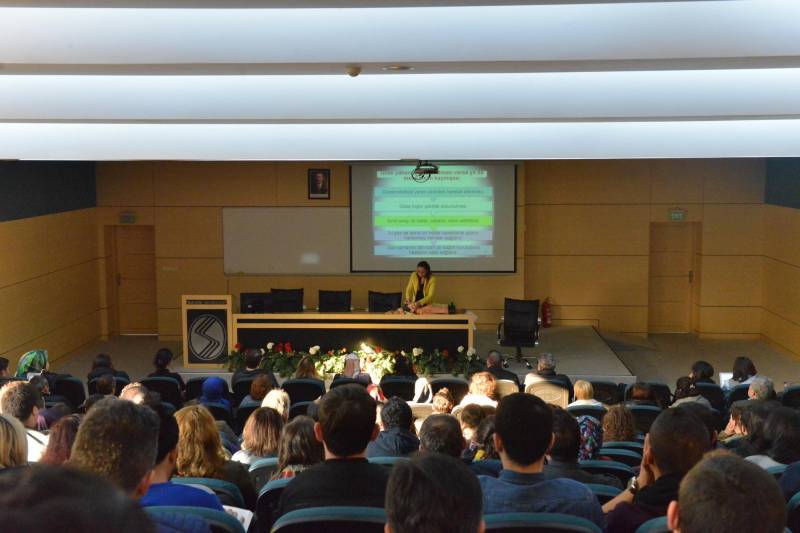 Konuşmasına ilkyardımın temel uygulamalarını anlatarak başlayan Öğr. Gör. Akduran, solunum yolu tıkanıklığında, Şok anında, göze, kulağa ve buruna yabancı cisim kaçmasında, kırık, çıkık ve burkulmalarda, kanamalarda, hayvan ısırıkları ve böcek sokmalarında ilk yardımın nasıl olması gerektiğini görseller ve örnekler ile anlattı.